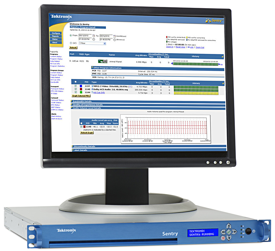 Sentry 5.0 ist die neueste Version des Tektronix-Systems zur Überwachung von Video-Streams mit Datenraten bis 1 Gbps pro Sentry-Einheit. Damit können in der Praxis Hunderte Videostreams mit einer Sensty-Einheit überwacht werden. Neben der Leistungssteigerung sind auch neue Funktionen hinzugekommen.