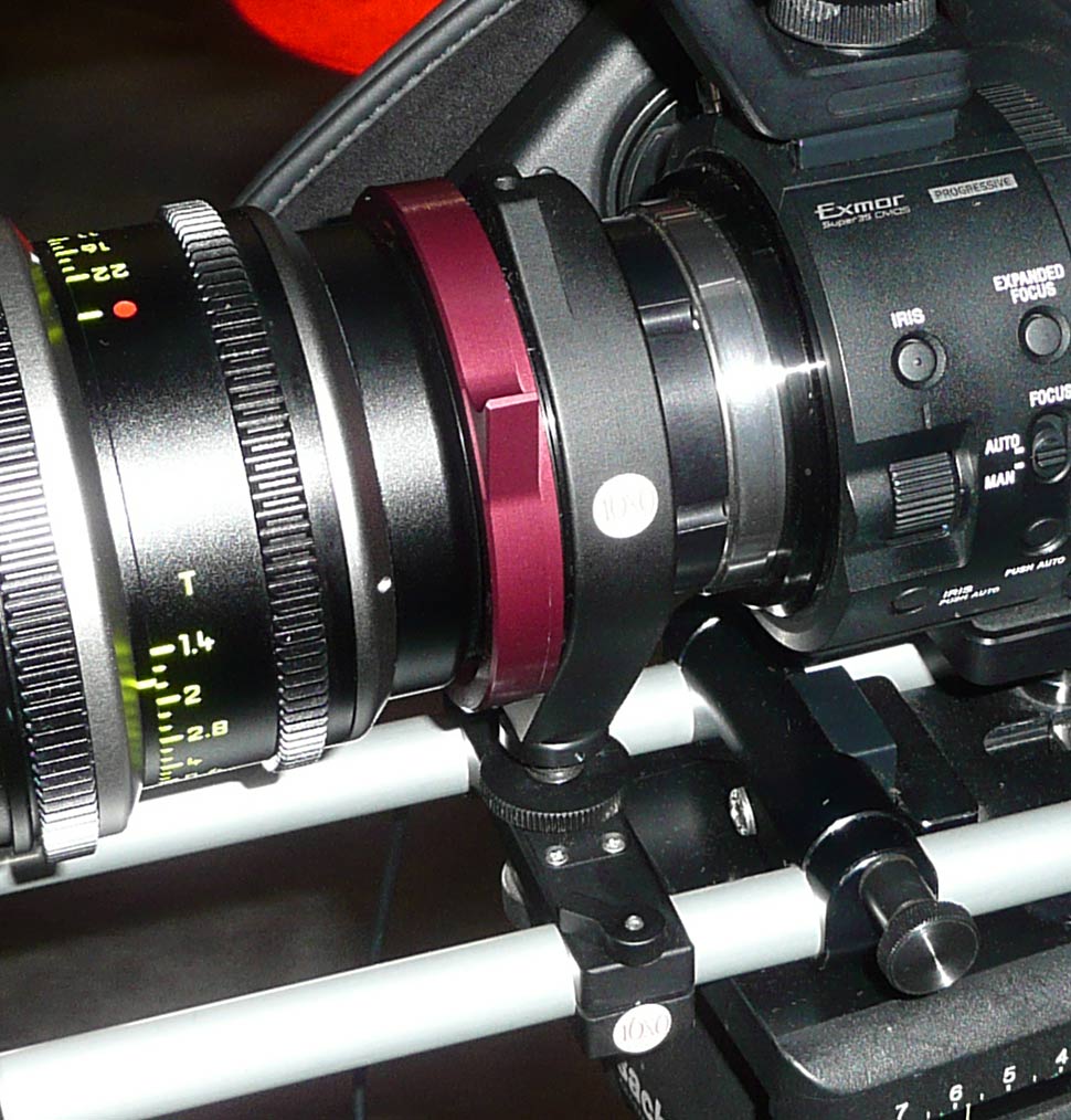 Vom Zubehörhersteller 16×9 kommt ein PL-Adapter, der es — je nach Version — erlaubt, PL-Objektive an E-Mount-Camcorder wie den NEX-FS100 von Sony oder an Micro-4/3-Camcorder wie den AG-AF101 von Panasonic anzuschließen. Eine Besonderheit des Adapters besteht darin, dass er auf 15-mm-Rohren abgestützt werden kann, wodurch das Spiel des Kameraanschlusses eliminiert und der Foto-Mount des Camcorders vom Gewicht des PL-Mount-Objektivs entlastet wird.