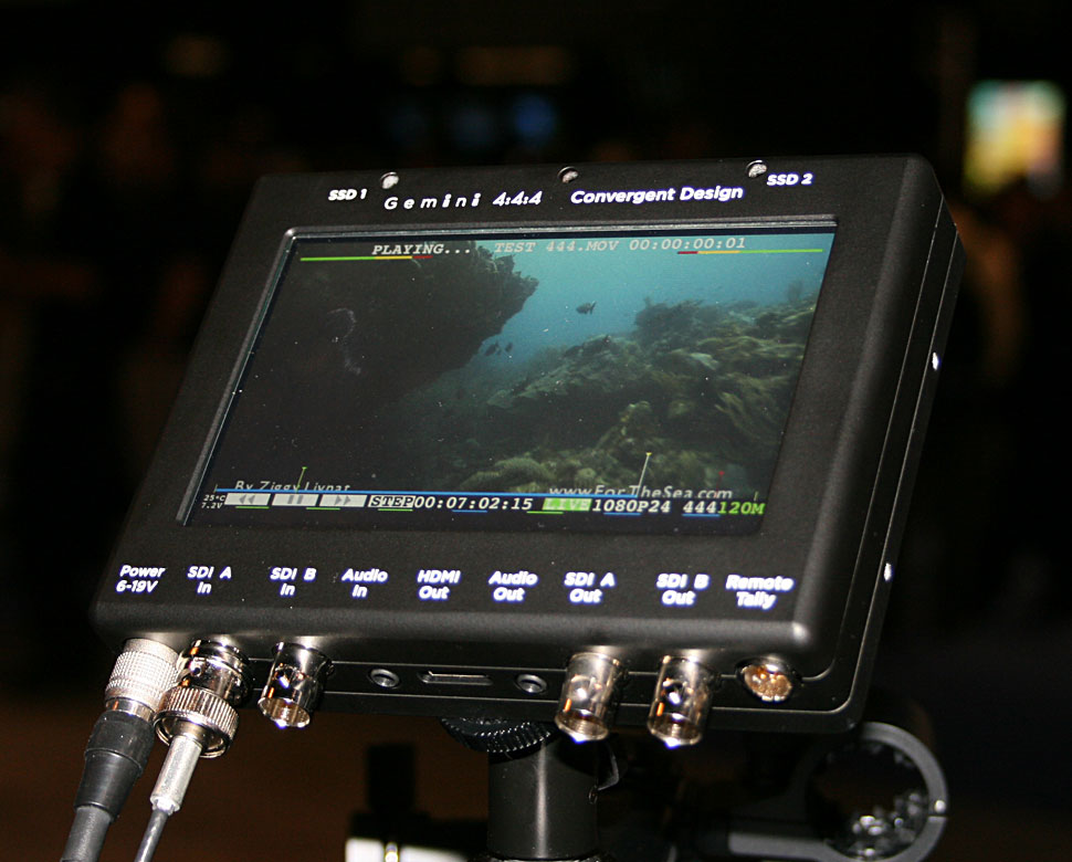 Der 4:4:4-Recorder Gemini von Convergent ist so etwas wie die Weiterentwicklung des NanoFlash-Recorders aus gleichem Haus. Der neue Recorder kann aber deutlich mehr: Er bietet einen integrierten Monitor, kann zwei HD-Signale gleichzeitig aufnehmen, eignet sich also auch für Stereo-3D-Aufzeichnen, er kann die aufgezeichneten Signale auch sofort wiedergeben und er bietet Datentransfer mit dreifacher Geschwindigkeit. Der Recorder ist aus Herstellersicht der optimale Partner für AG-AF101 (Test) von Panasonic, PMW-F3 (Test) und F35 von Sony und Alexa von Arri. Gemini zeichnet auf SSD-Cartridges auf, er bietet HD/2K, 4:2:2/4:4:4, !0 Bit, S-Log, Dual Link, 3G und 16-Embedded-Audiokanäle.