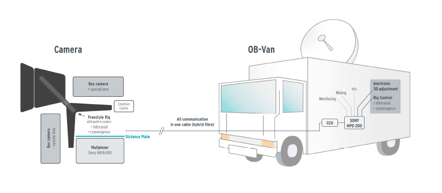 P+S Technik und Sony haben gemeinsam eine Möglichkeit entwickelt, bei Stereo-3D-Produktionen das Freestyle-Rig über die MPE-200-Box aus fernzusteuern.