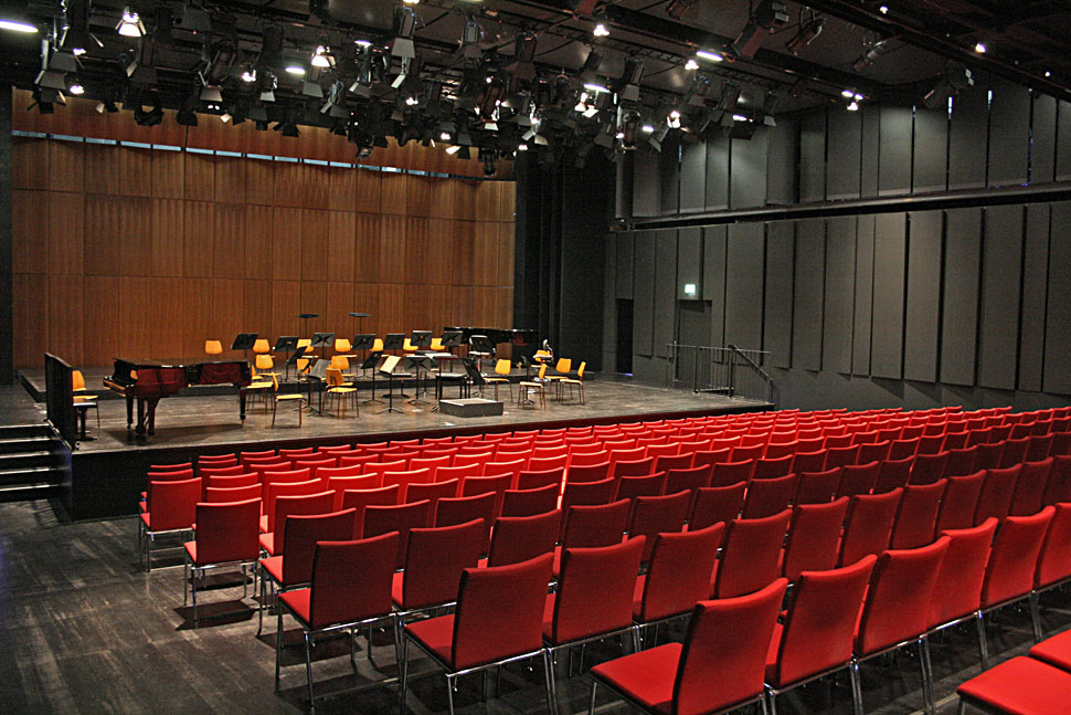 Ein zentrales Element der Tonaufnahmetechnik ist das große Lawo-Pult: ein mc²66 in der Tonregie A, von dem aus Sichtkontakt ins Tonstudio besteht, das aber aufgrund der hochwertigen Toninfrastruktur im ganzen Haus für die Aufnahme von Konzerten aus den diversen Sälen genutzt werden kann. Das Lawo-Pult selbst ist mit 32 Fadern bestückt, der HD-Core bietet 144 DSP-Kanäle und eine Routing-Kapazität von 8.000 x 8.000 Koppelpunkten. Als I/O-System wurde Lawo Dallis installiert. Zusätzlich ist noch eine zweite Tonregie vorhanden, die für die Nachbearbeitung der Aufnahmen vorgesehen ist. Für die beiden sehr flexibel nutz- und bestuhlbaren »Studios« gibt es eine weitere Tonregie.