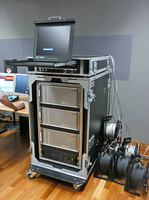 »Eine wichtige Frage beim mobilen Setup stellte sich darin, über welches Kabel wir die Racks untereinander verbinden konnten. Zunächst fanden wir keinen Anbieter, der HD-SDI im Multipin-Stecker zertifiziert und sicher überträgt. Mit der US-Firma Wireworks entdeckten wir aber schließlich doch einen Hersteller, der solche Stecker anbietet«, erzählt Christoph Feiel: »Und bisher funktioniert das absolut reibungslos.«