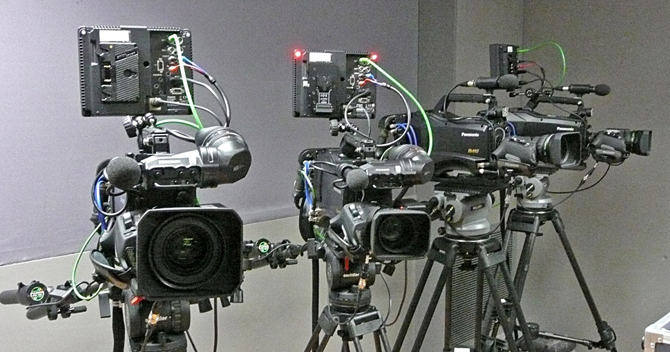Das Studiosystem besteht aus der Basisstation AG-BS300 und dem Kamera-Adapter AG-CA300G. Bei diesem Studiosystem lassen sich alle relevanten Studiosignale wie Program- und Return-Video, Interkom, Tally- und Mikrofonsignale sowie die Spannungsversorgung über ein Standard-BNC-Videokabel und ein DC-Kabel übertragen. »Wir haben die Kameraanbindung dann darüber hinaus noch weiter aufgerüstet, um die Kameras synchron mit Timecode versorgen zu können. Außerdem haben die Camcorder voll servogesteuerte Fokus- und Zoomsteuerungen erhalten, da sich diese gegenüber mechanischen Hinterkamerabedienungen speziell beim Schärfen von HD-Bildern viel besser bewährt haben«, ergänzt Christoph Feiel.