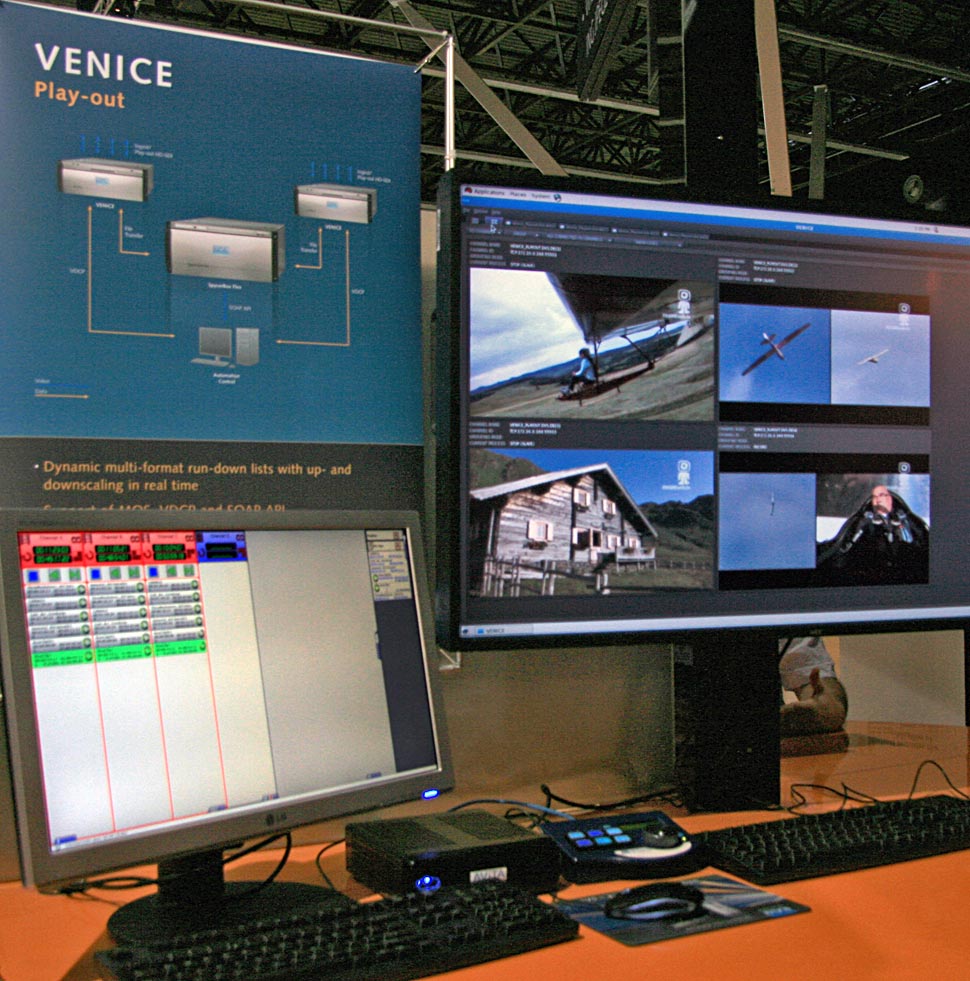 Außerdem hat DVS die Möglichkeiten verbessert, Venice im Zusammenspiel mit den Avid-Systemen Isis und Interplay zu nutzen. Venice kann somit als zentrales Ingest-System in heterogenen Broadcast-Umgebungen genutzt werden. Das Zusammenspiel mit den Avid-Systemen schafft die Voraussetzung für Live-Video-Ingest und -Playout über HD-SDI, sowie File-Ingest von PDs oder P2-Speichermedien.