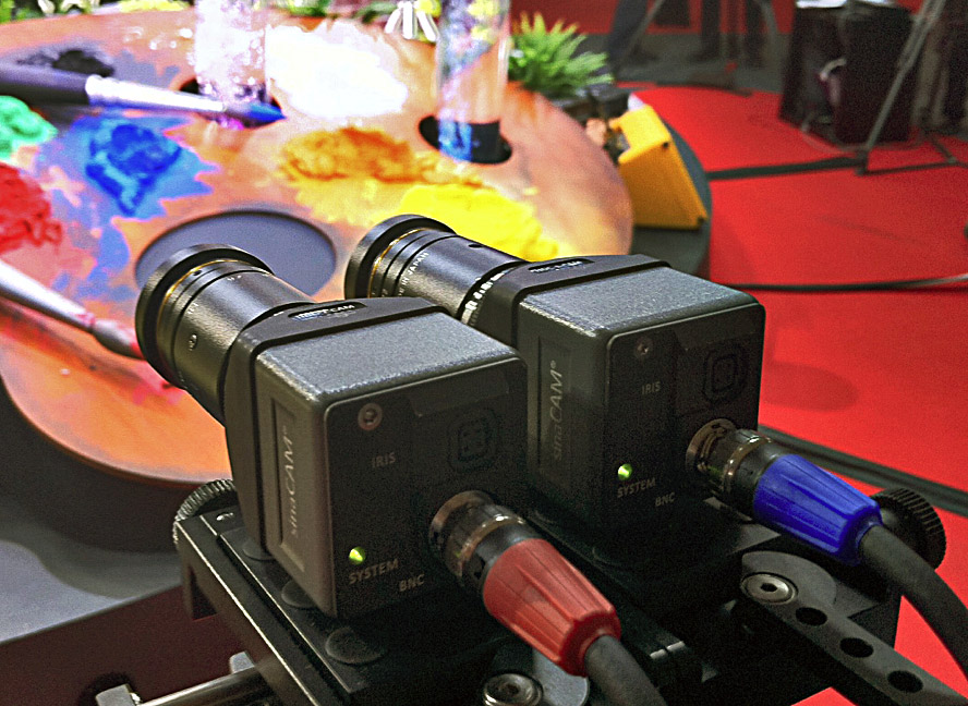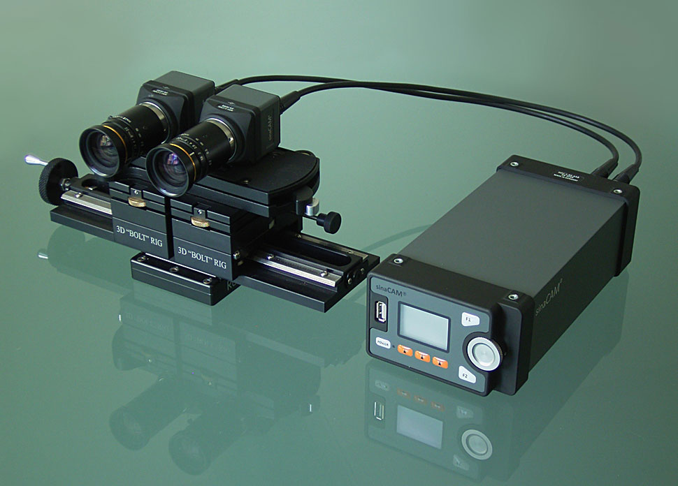 Die SinaCam HDC1-D ist eine kompakte, fernsteuerbare Single-Sensor-Kamera mit 2/3-Zoll-CCD und Global Shutter. Bei der Kamera sind — wie bei den meisten Minikameras — Kamerakopf einerseits und Signalelektronik/IOs getrennt. Zwei SinaCams können für Stereo-3D-Aufnahmen pixelsynchron miteinander verkoppelt werden, dabei wird dann nur eine Signal- und Steuereinheit benötigt.