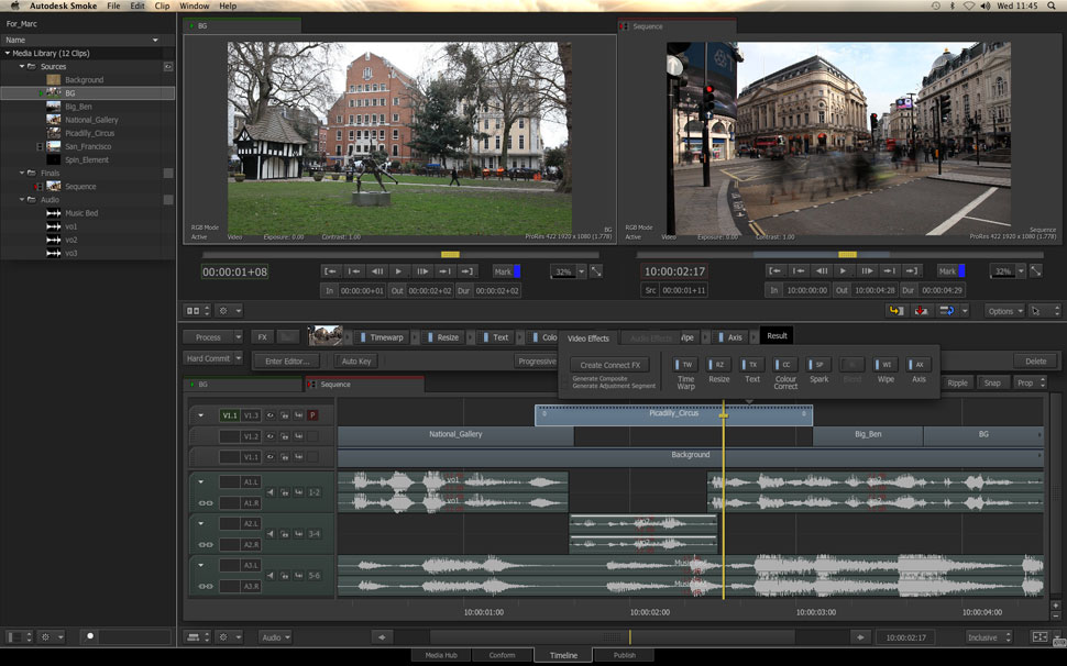 Mit der neuen Version von Smoke für den Mac will Autodesk die genannten Anforderungen besser erfüllen und innerhalb dieser Software sowohl umfassende Editing-Funktionen bieten, wie auch umfangreiche Visual-Effects-Funktionen. Besonderen Wert habe man bei der neuen Benutzeroberfläche darauf gelegt, dass sich Final-Cut- und MediaComposer-Editoren in Smoke sehr schnell zurechtfinden sollen.