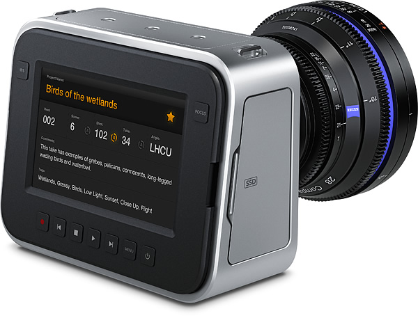 Die neue Kamera ist zudem an der Rückseite mit einem großen LCD-Schirm bestückt, über den sich viele der eingebauten Funktionen bedienen lassen. Auch Metadaten können etwa darüber eingegeben werden. Neben Thunderbolt-Schnittstellen bietet die Kamera einen 3-Gbps-SDI-Ausgang und einen Klinken-Audioeingang. Ein eingebautes Mikro ist ebenfalls vorhanden. Die Kamera laut Hersteller mit Canon- EF- und Zeiss-ZF-Objektiven genutzt werden. Die Speicherung der Bilder und Töne erfolgt auf SSDs.