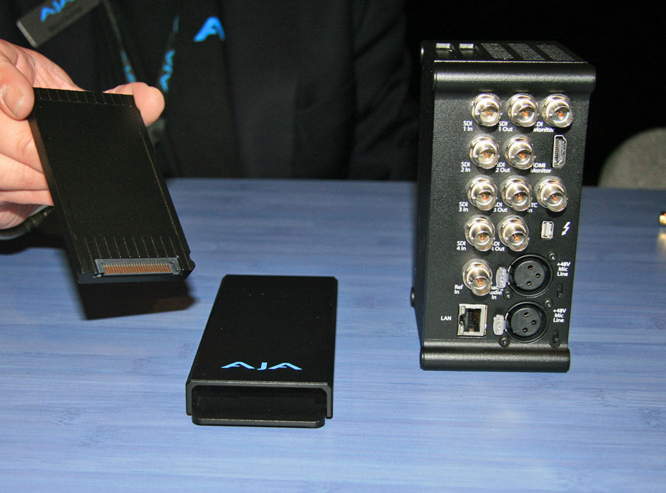 T-Tap ist eine kompakte Box, die auf der einen Seite einen Thunderbolt-Anschluss bietet und auf der anderen über SDI- oder HDMI-Anschlüsse 10-bit SD, HD und 2K ausgibt. Die kompakte Box ist kaum größere als ein Mobiltelefon und soll 249 Dollar kosten.