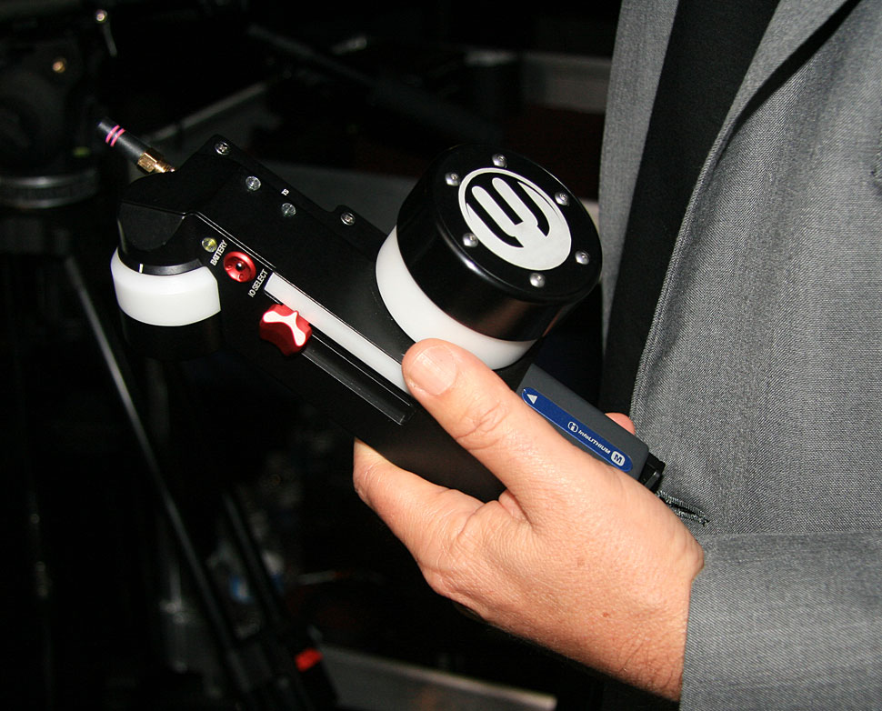 Einen Prototypen eines W-LAN-Adapters konnte man am Red-Stand ebenfalls in Arbeit sehen: das Meizler-Modul ermöglicht Fokus-, Blenden- und Zoomsteuerung und wurde gemeinsam mit einem Redkunden entwickelt.