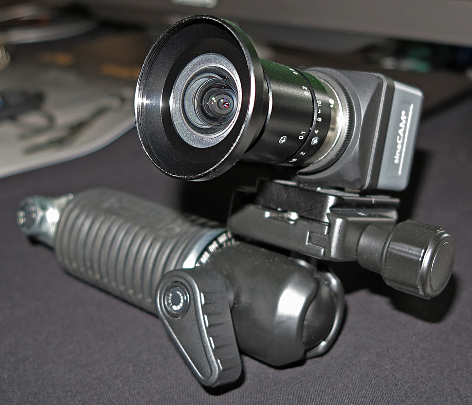 Pure4C zeigte die Minikamera Sinacam: eine kompakte, fernsteuerbare Single-Sensor-Kamera mit 2/3-Zoll-CCD und Global Shutter. Bei der Kamera sind — wie bei den meisten Minikameras — Kamerakopf einerseits und Signalelektronik/IOs getrennt. Zwei SinaCams können für Stereo-3D-Aufnahmen pixelsynchron miteinander verkoppelt werden, dabei wird dann nur eine Signal- und Steuereinheit benötigt. Seit ihrer ersten Vorstellung wurde die Kamera deutlich weiter entwickelt. Sie bietet nun 13,5 Blenden Dynamikumfang, S-Log, B4- und PL-Adapter und lässt sich mit einem einfachen Koaxkabel zwischen Kamera und Base Unit verbinden. Zudem unterstützt sie nun auch das Sony-RCP-Protokoll, sodass sich die Kamera auch im Ü-Wagen-Umfeld besser einsetzen und fernsteuern lässt.