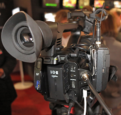 Eine Variante des HM600 ist der HM650, den JVC allerdings erst zum Jahresende ausliefern will. Er gleicht weitgehend dem 600er, kann aber HD-Files auf der einen Karte aufzeichnen und web-freundliche Files mit 1/4-HD-Auflösung auf der zweiten Karte. Mit eingebautem FTP und WiFi-Verbindung, kann der GY-HM650 Material auch ohne SNG-System zum Sender schicken.