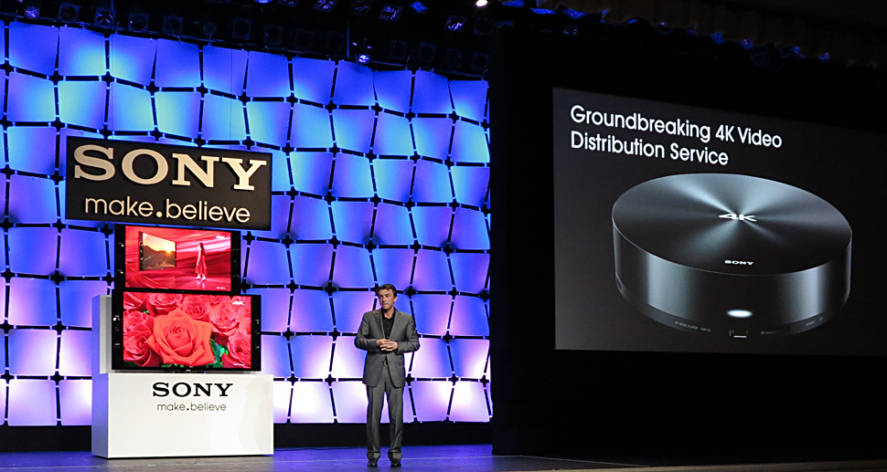 Phil Molyneux, der Chef des Consumer-Bereichs von Sony in den USA stellte dann noch kurz Sonys Strategie und neue Geräte für den Endkundenbereich im 4K-Sektor vor: Ab sofort können Interessenten in ausgewählten Sony-Stores 4K-Monitore anschauen und ab Mai 2013 dann online bestellen. Dabei handelt es sich um einen 55-Zoll-Fernseher für rund 5.000 US-Dollar und einen 65-Zöller für rund 7.000 US-Dollar (Netto-Listenpreise). Für rund 700 US-Dollar gibt es noch einen 4K-Media-Player dazu, auf den zehn Filme in 4K aufgespielt sind.