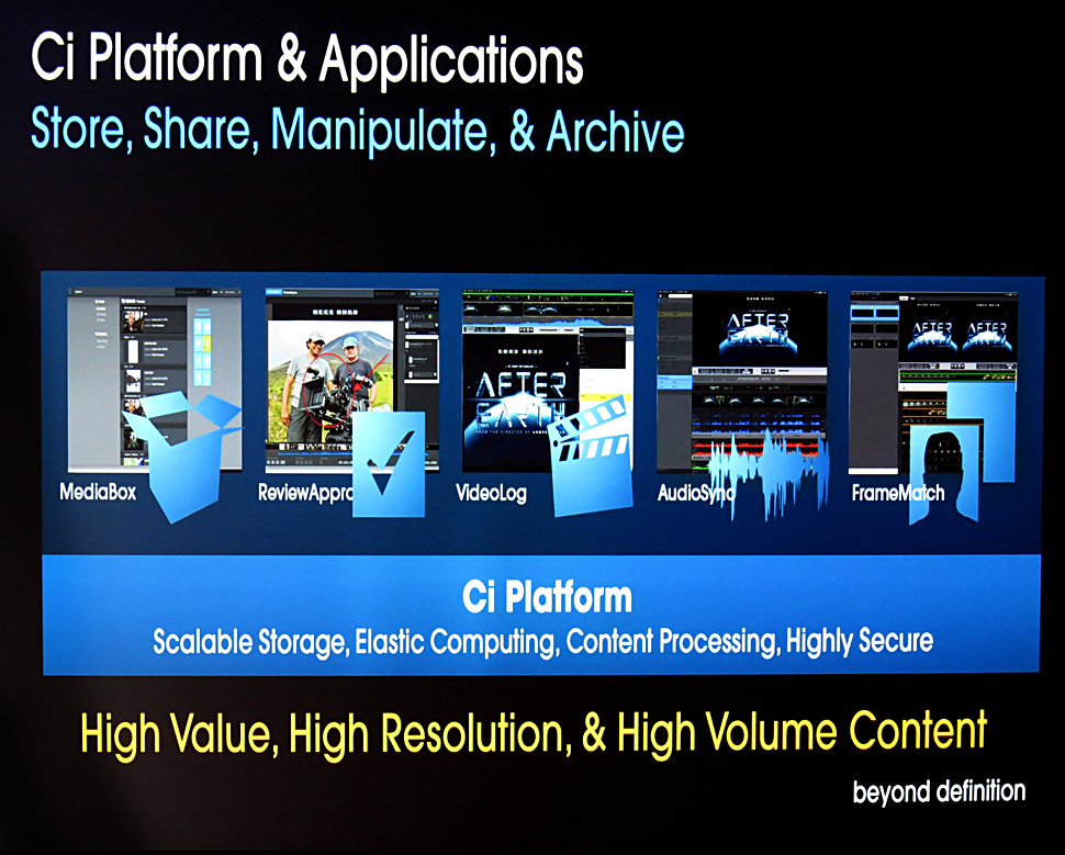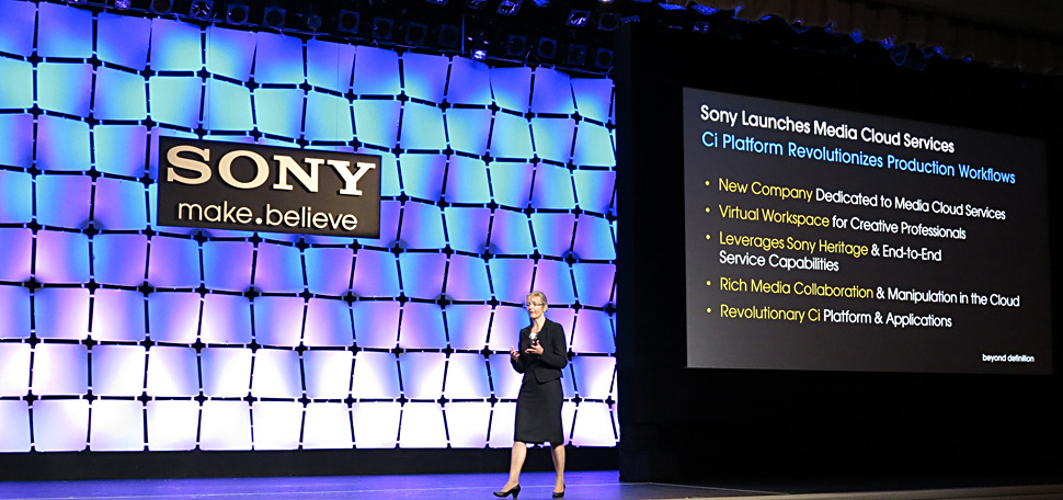 Naomi Climer präsentierte Sonys Cloud-Service Ci, eine Online-Plattform, innerhalb der sich Content online schneiden, bearbeiten, teilen und archivieren lässt — mit Tools für große Unternehmen, aber auch für »creative individuals«.