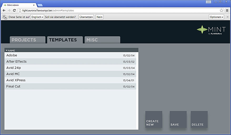 Über die integrierte Template-Funktion kann ein Administrator gemeinsame Basis-Einstellungen für alle Projekte festlegen. Damit wird eine einfache Benutzung bei gesenktem Fehlerpotential und gleichzeitig ein hoher Arbeitskomfort in der Postproduktion sichergestellt.