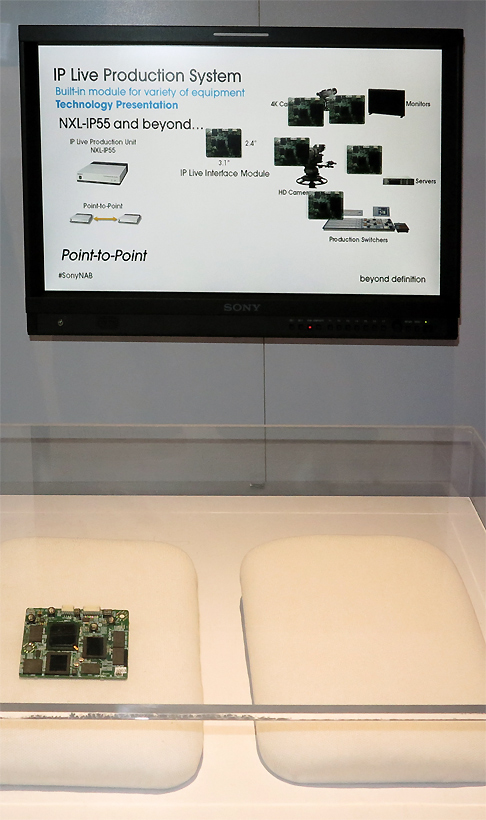 Sony präsentierte an seinem NAB2013-Stand unter anderem auch ein kleine, ziemlich unscheinbare Platine, die aber größeres Potenzial entfalten könnte: Darin steckt die Technologie, auf deren Basis Sony sein IP-Live-Übertragungssystem realisiert hat.