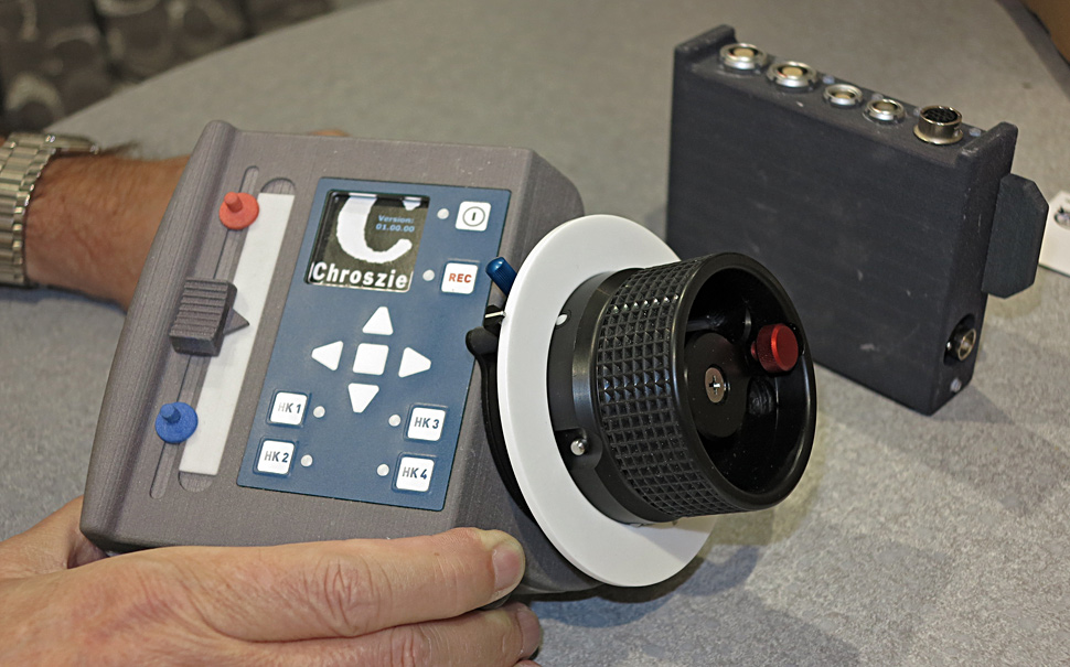 Der offizielle Startschuss fiel im Rahmen der NAB2013 am gemeinsamen Stand von Schneider und Chrosziel. Der Entwickler Heiko Groschupp hatte ein erstes Designmodell mitgebracht, das die Interessenten anfassen und auf seine Ergonomie testen konnten. Auch der Vorentwurf beruht schon auch Rückmeldungen von Anwendern: »Wir haben Kameraassistenten angesprochen und eine Menge wertvoller Hinweise bekommen«, berichtet Jürgen Nußbaum, Geschäftsführer von Chrosziel. Nun soll der Prozess weiter gehen und eine Funkschärfe entstehen, die den Nutzerwünschen möglichst nahe kommt.