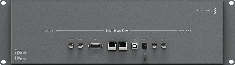 Smart Scope Duo ist eine Dual-Video-Monitoring-Lösung mit eingebautem Scope. Auf zwei 8-Zoll-Displays ist unabhängig voneinander Video- und Waveform-Monitoring möglich, wobei sieben unterschiedliche Darstellungen vorgesehen sind: Waveform, Vektorskop, RGB/YUV-Parade, Histogramm, Audio Scope mit 16 Kanälen SDI Audio und Audio-Phase-Messung.