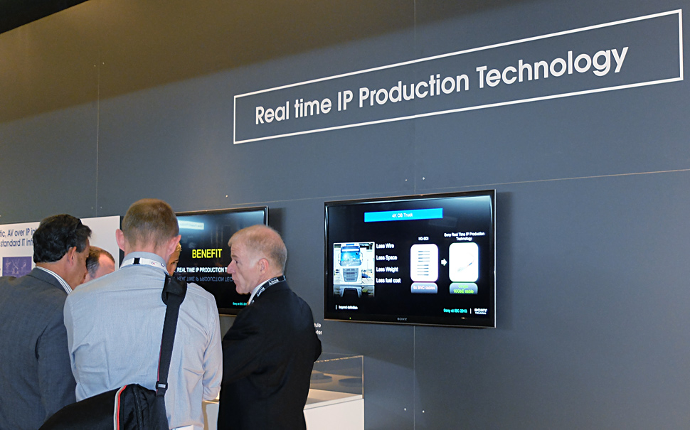 Als Technologie, die man definitiv mit Hochdruck weiterverfolgen werde und wo es schon erste produkte und Installationen gibt nannte Sony den Einsatz IP-basierter Produkte im Live-TV-Bereich.