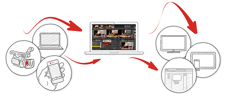 Make TV bietet cloud-basierte, kollaborative und interaktive Live-Videolösungen. Mit der Cloud-Produktions-Software lassen sich Live-Streams mehrerer Kameras erstellen und mit Archivmaterial und interaktiven Elementen anreichern.