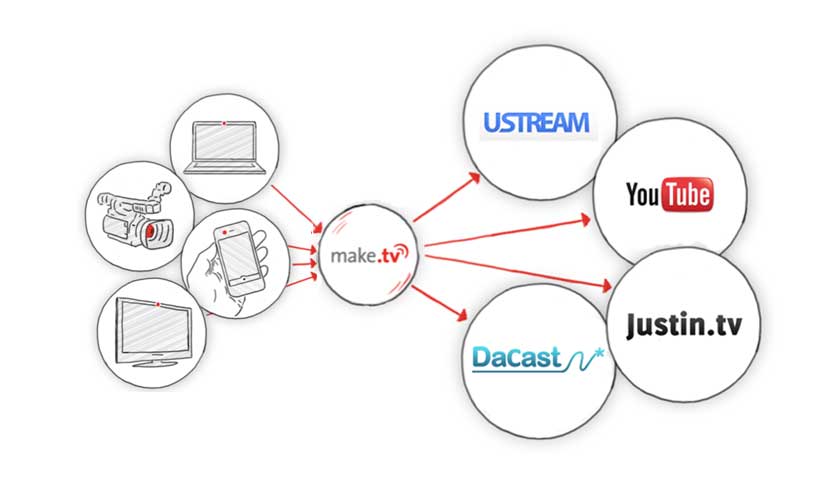 Make TV ist eine Cloud-Plattform für die browser-basierte Produktion von Clips und ganzen Magazinsendungen — auch im Live-Betrieb. Anwender an verschiedenen Standorten können damit gemeinsam Sendungen produzieren, es sind Live-Schaltungen zu per Webcam angebundenen Gesprächspartnern möglich.