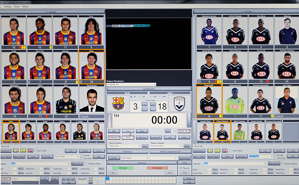 - Mit LiveCG Football ist es möglich, im Zusammenspiel mit Tricaster umfassende Zusatzdaten zu erfassen und grafisch aufbereitet in die Produktion einzubinden. Daten wie Torschüsse, Ballbesitz, Eckenverhältnis, Zweikämpfe und vieles mehr, lassen sich mit LiveCG Football mit einem externen Rechner erfassen und per Templates oder mit eigenen Vorlage als Grafik ausgeben und in die Live-Produktion einbinden.