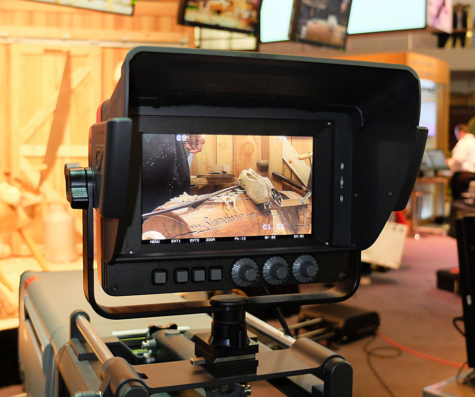 Mit dem Eyecatcher 744 präsentiert Grass Valley einen neuen Viewfinder, der auf OLED-Technik basiert. Der 7,4-Monitor bietet QHD-Auflösung (Quarter HD, 960 (H) x 540 (V)), er bietet einen sehr hohen Kontrast und liefert auch bei extremen Blickwinkeln noch gut ein gutes Bild, was bei Farb-LCDs oftmals sehr problematisch ist (170 Grad Betrachtungswinkel, h und v). Der Monitor unterstützt alle gängigen HD-Formate, weist ein stabiles Gehäuse auf, bietet drei frei belegbare User-Buttons sowie Peaking und soll rund 10.000 Euro netto kosten.