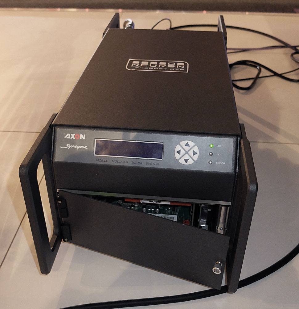 Neuron vom niederländischen Hersteller Axon ist ein System, mit dem sich 3G-Signale über eine standardisierte, IP-basierte Infrastruktur per AVB (Audio Video Bridging) übertragen lassen.