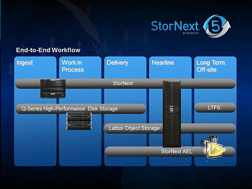 Zentrales Element der StorNext Pro-Lösungen ist StorNext 5: eine neue, leistungsfähige Storage-Management-Plattform. Diese ist optimiert für moderne Medien-Workflows, die einem kontinuierlich steigenden Termindruck unterliegen.