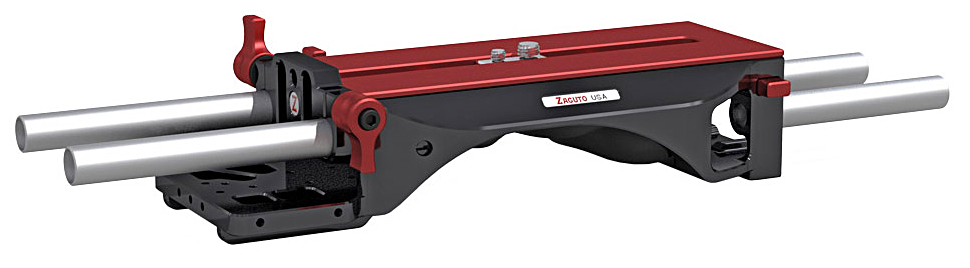 Die VCT Baseplate hat Zacuto überarbeitet. Die neue VCT Baseplate mit eingebautem Gel-Schulterpolster greift den Look and Feel von traditionellen ENG-Kameras auf, bietet aber eine Schwalbenschwanz-Verstellmöglichkeit, um die Balance schnell ändern zu können, etwa wenn ein anderes Objektiv an der Kamera verwendet wird und den Schwerpunkt des Gesamtsystems verändert. In der Montagehöhe verstellbare Zubehörstangen an der Vorderseite der Platte vervollständigen dies Basisplatte.
