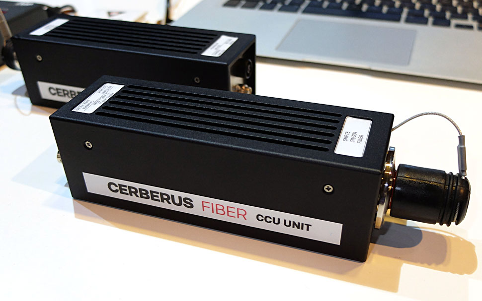LMP zeigte während der IBC2014 auch das Glasfaser-System Cerberus Fiber, das eine direkte Übertragung der Sensordaten zur CCU via SMPTE-Verbindung ermöglicht.