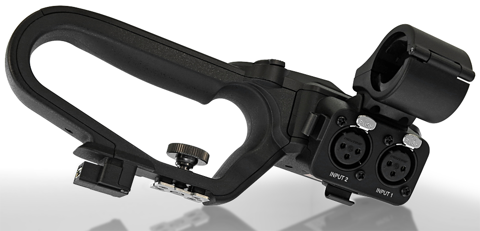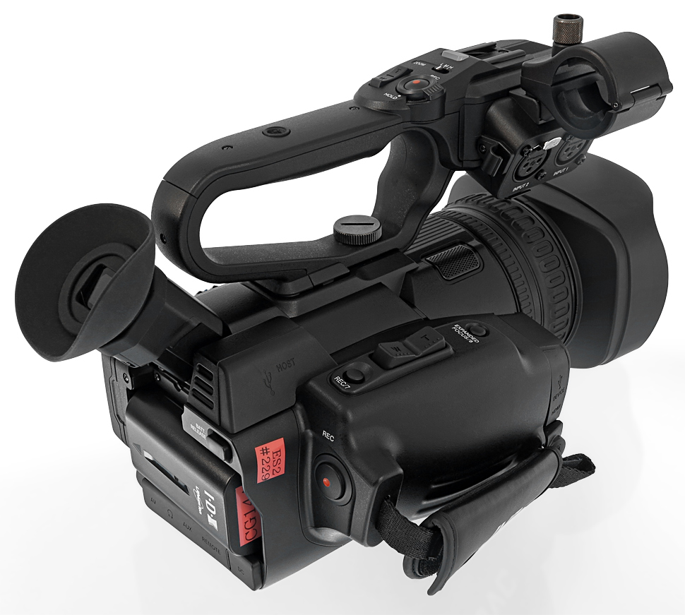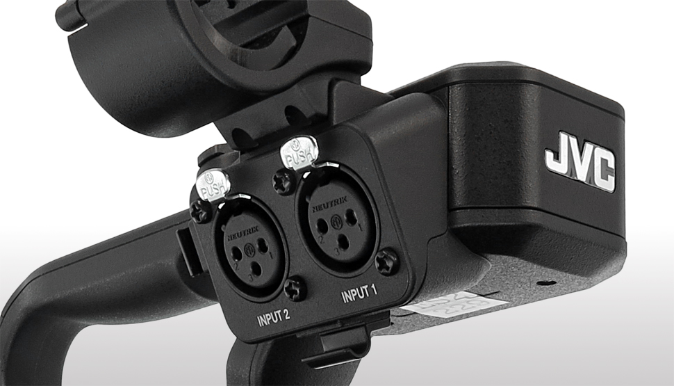 Der GY-HM200 von JVC ist ein Handheld, der als Single-Sensor-Camcorder konzipiert und mit einem 1/2,33-Zoll-Sensor bestückt ist. Er kann mit einem Tragegriff ausgerüstet werden, der dann auch zusätzliche Bedienelemente und XLR-Buchsen mitbringt. Erstmals bei JVC nimmt der Tragegriff über eine integrierte Dockingbuchse kabellos Kontakt zum Camcorder auf.
