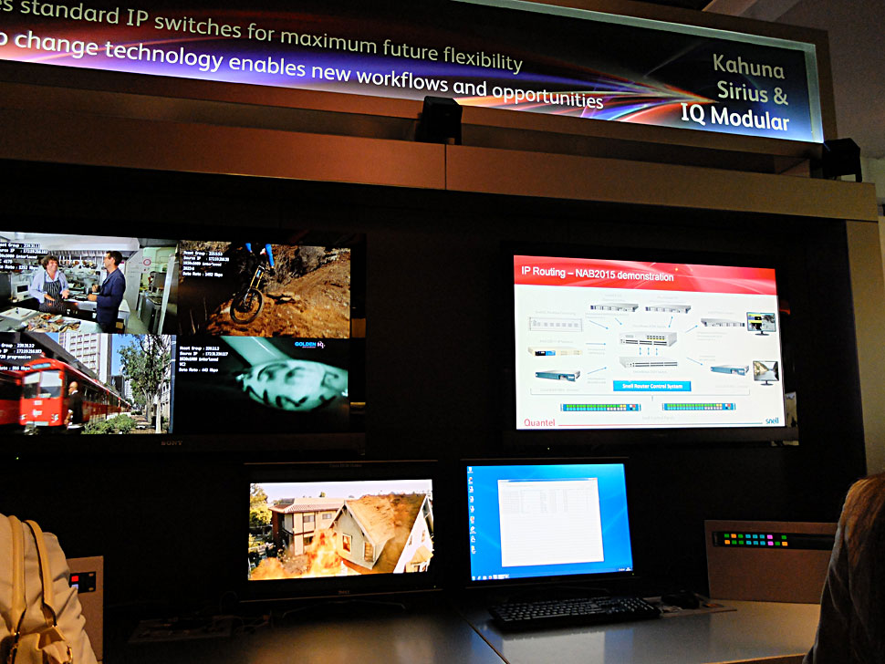 Auf der NAB war auch zu sehen, wie mit einer Sirius 800 Multiformat-Kreuzschiene 40 Gigabit VC-2-komprimierte Videodaten als IP-Streams verteilt werden können. Genau wie die Kahuna IP-Entwicklung werden auch einige Sirius-Kunden diese Anwendung zunächst Mitte des Jahres testen, bevor diese im vierten Quartal 2015 verfügbar werden soll.