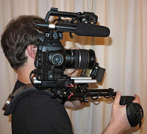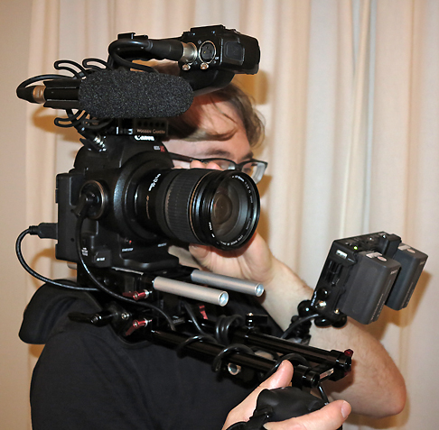Bei vorab planbaren Videos kommt der Canon-Camcorder C100 (Test) zum Einsatz. Als Objektiv werden wir überwiegend ein Canon EF-S 17-55 F2.8 mit Bildstabilisator nutzen. Ergänzt wird der C100 um eine Ledzilla-Leuchte, ein Handmikro und eine Funkmikro-Strecke. Der Camcorder wird überwiegend auf einem Schulter-Rig von Vocas eingesetzt (Vocas Handheld Kit).