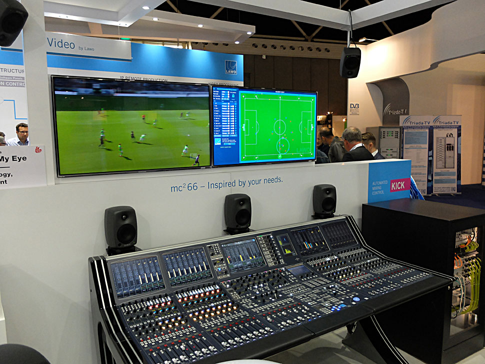 Lawo präsentierte bei der IBC Kick: eine Technologie zur automatisierten Steuerung des Close-Ball-Mixing bei Audioproduktionen von großen Sport-Events. Über Schnittstellen an moderne Bildanalyse- und Trackingsysteme angebunden, garantiert Kick eine konsistente, vollautomatisierte, hochwertige Close-Ball Audio-Mischung von großen Sportevents wie Fußballspielen, Rugby oder American Football.