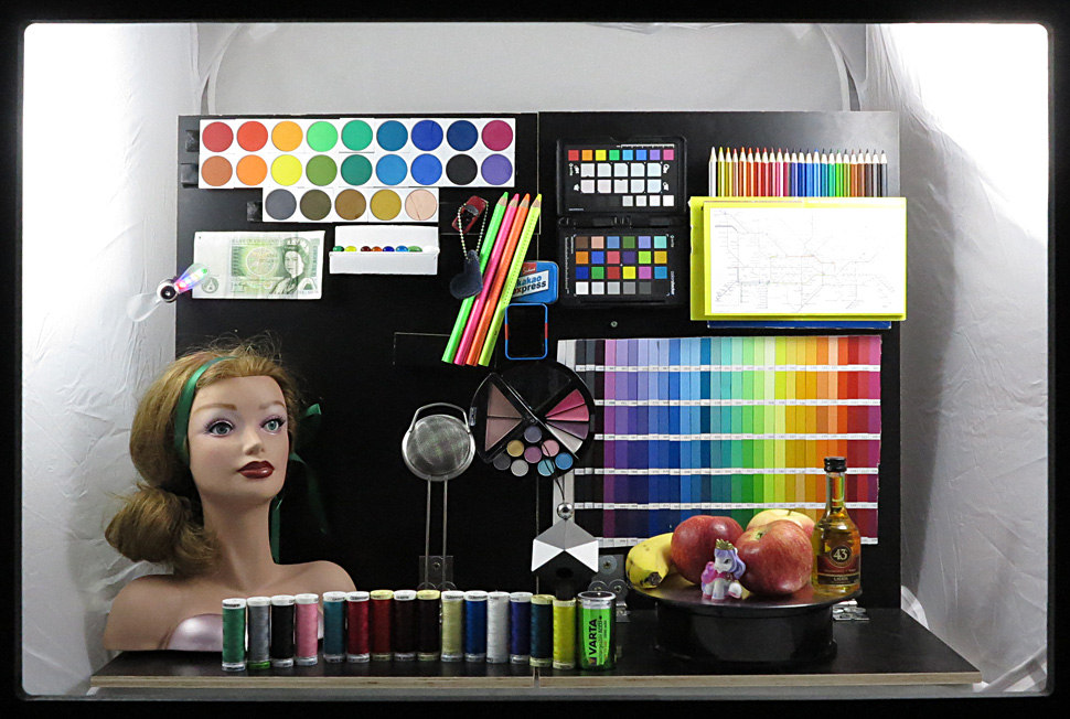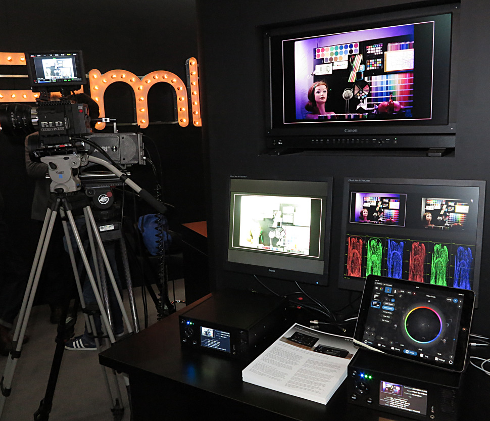 Gemeinsam mit Partnern zeigte Filmlight am IBC2015-Stand, wie man einige der grundlegenden Technologien, Produkte und Workflows von Filmlight verwenden kann, um schon am Set die Bilder verschiedener Kameras so aneinander anzugleichen, dass sie eine nahezu identischen Look haben. Dazu waren eine Alexa von Arri und eine Red Dragon auf einen Schaukasten gerichtet, der statische und bewegte Elemente in zahllosen Farbschattierungen enthielt. Dieses Motiv wurde dann von beiden Kameras gefilmt und zwar in mehreren Durchgängen über den gesamten Blendenbereich. Auf Basis dieser Durchläufe wurden dann mit Flip exakte Farbprofile der jeweils verwendeten Gesamtsysteme aus Kamera, Filtern und Objektiv generiert und diese exakt aneinander angeglichen.