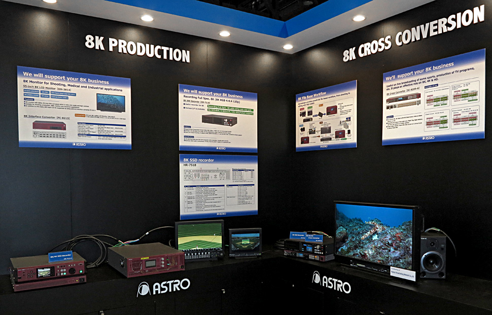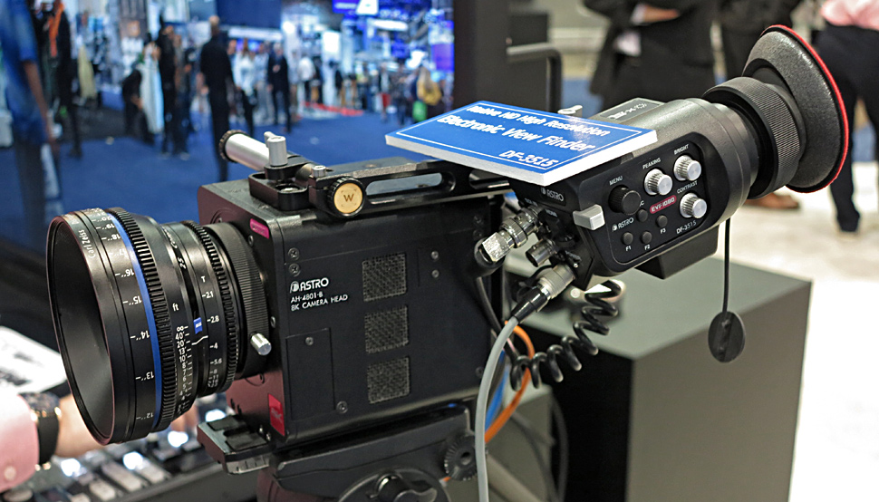 So war in diesem Jahr bei der NAB an mehr Stellen als je zuvor das Thema 8K präsent. Ein paar Beispiele: Canon hatte einen eigenen 8K-Pavillon aufgebaut, Panasonic zeigte — etwas versteckt — eine 8K-Lösung aus Recorder und Monitor, bei Ikegami konnte man eine funktionierende 8K-Kamera und einen Monitor sehen, Astro zeigte neben Messgeräten und Wandlern sogar schon ein zweites 8K-Kameramodell aus eigener Entwicklung und einen 55-Zoll-Produktionsmonitor, Fujifilm präsentierte ein 8K-Objektiv in einer Vitrine am Stand.