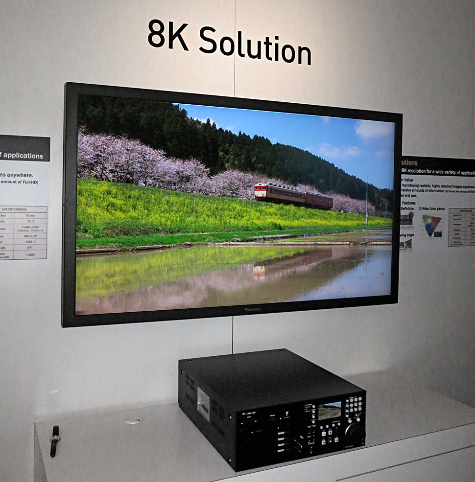 Der Grund dafür: Der japanische Broadcaster NHK will ab 2020 ein Vollprogramm in 8K-Auflösung im Regelbetrieb anbieten. Solche staatlichen Projekte sollen der japanischen Industrie Technologievorteile sichern. Dieses Schema hat schon mehrfach funktioniert und so kann es nicht überraschen, dass nun von japanischen Herstellern in jüngster Zeit auch immer öfter 8K-Produkte gezeigt werden. Das japanische Staatsfernsehen treibt hierfür die japanischen Hersteller regelrecht an und bindet sie in die Entwicklung ein.