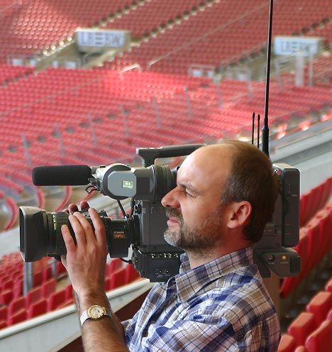 »Wir haben zwei Diversity-Antennen installiert, die decken den gesamten Stadioninnenraum ab und reichen sogar – mit gewissen Einschränkungen – bis in die Mix-Zone, wo sich Spieler und Journalisten vor und nach den Halbzeiten aufhalten. Die Übertragung ist sehr stabil,« erläutert Rainer Kampe von Wireworx: »Lediglich beim Interkom von der Regie zur Kamera gibt es beim Sony-System noch Verbesserungsbedarf.« Das System nutzt für die Sprechverbindung zum Kameramann sowie für die Taktung und Steuerung der Kamera ein separates Audio-Funksystem. In der Gegenrichtung wird das Sprachsignal des Kameramannes in das Kamerasignal integriert. »Die drahtlose Kamera verhält sich an der Steuereinheit genauso wie eine kabelgebundene Kamera. Wir sind mit der Stabilität und Qualität der MPEG- Übertragung sehr zufrieden. Ich bin zuversichtlich, dass wir die Interkom-Qualität im Zusammenspiel mit Sony ebenfalls noch auf ein höheres Niveau heben können,« ergänzen Gert Laabs und Rainer Kampe. Die MPEG-Übertragung bringt eine Verzögerung mit sich, was sich bei anderen Applikationen störend bemerkbar machen kann, wenn etwa Ton und Bild bei der Live-Wiedergabe deutlich versetzt sind. Im Stadion spielt das laut Gert Laabs aber keine Rolle: In einem so großen Stadion hat man ohnehin immer mit Audio-Laufzeiten zu kämpfen, das ist normal. »Bei uns passt der Bild/Ton-Versatz mit der mittleren Audio-Laufzeit des Stadions zufällig so gut zusammen, dass Bild und Ton sehr gut korrespondieren, wenn wir auf die drahtlose Kamera schalten.«