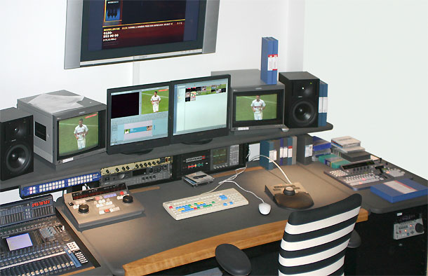 An den Spieltagen hat der NLE-Platz zwei Funktionen: Von hier werden direkt die Spielervorstellungen der jeweils aktuell aufgestellten Mannschaft ausgespielt. Wenn das Spiel läuft, wird im Hintergrund ein Clean Feed digitalisiert und parallel dazu im Vordergrund ein Highlight-Zusammenschnitt erstellt. »Blue erweitert hier unsere Möglichkeiten beträchtlich. Wir können im Hintergrund weiter aufzeichnen, während wir im Vordergrund einen qualitativ hochwertigen Highlight-Schnitt realisieren können,« stellt Gert Laabs dazu fest.