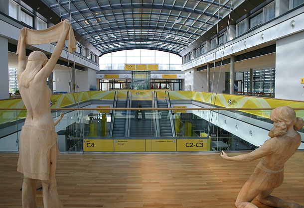 Es gibt neben dem Kino auch noch einige andere Möglichkeiten, im IBC HD-Bilder in höchster Qualität zu sehen. So betreibt etwa T-Systems im IBC eine VIP-Lounge, in der die Spiele auf 47-Zoll-Barco-Schirmen zu sehen sein werden.