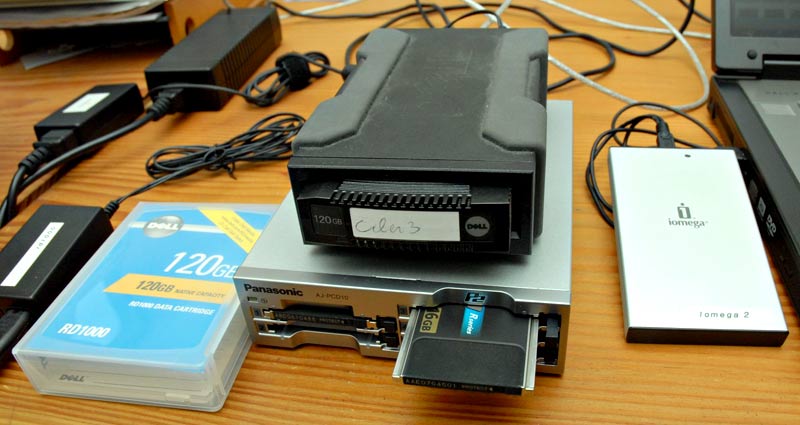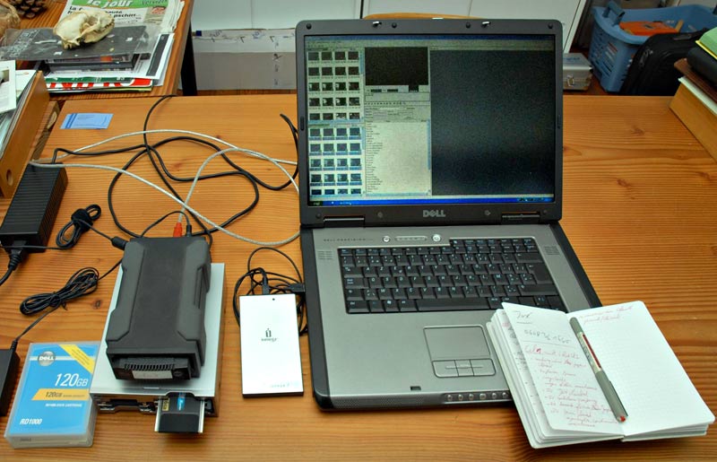 Um die Daten redundant zu sichern, kopierte Herren den Inhalt der P2-Karten täglich in der Hütte auf kleine USB-gespeiste 250-GB-Festplatten sowie auf äußerst robuste, aber etwas schwerere 120-GB-Festplatten von Dell. »Ich übertrage gerne auf kleinere Speicherplatten zwischen 160 und 250 GB. Wenn etwas verloren geht, dann sind die zu rekonstruierenden Datenmengen nicht so groß. USB-Platten verwende ich aus zwei Gründen: Damit kann man in der Drehphase ohne Computer direkt vom HPX2100 auf eine USB-Platte kopieren, wenn das nötig sein sollte. Außerdem sind diese Platten sehr viel handlicher.«