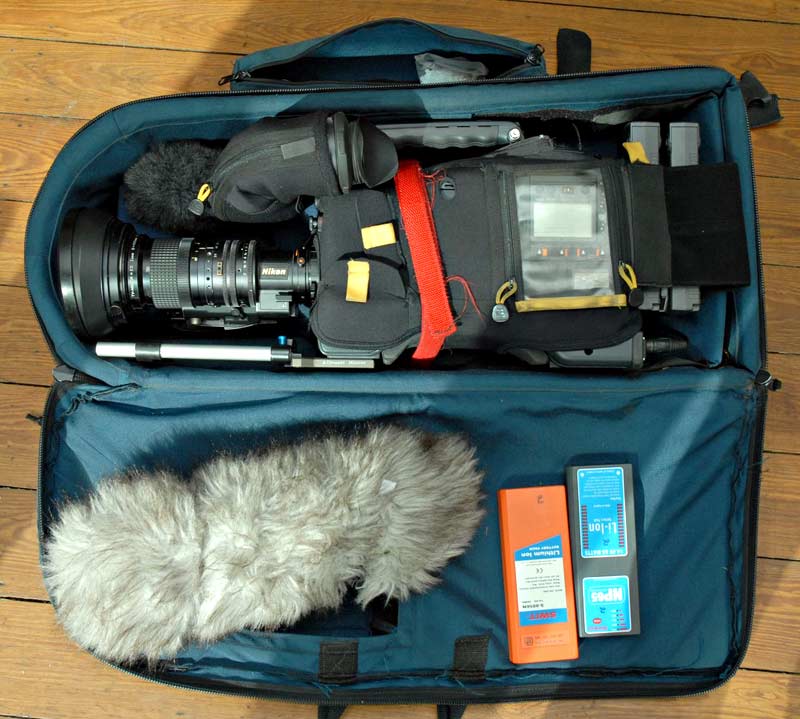 Als Basis-Equipment führte Gerd Herren das folgende mit: Einen P2-Camcorder des Typs AJ-HPX2100 von Panasonic, der in einer Kata-Neoprenhülle steckte. Dazu ein Nikkor ED Broadcast-Objektiv (Brennweite 8 – 310 mm) mit eingebautem Extender. Diese Objektiv wird nicht mehr gebaut, aber Gerd Herren schätzt es, weil es aus seiner Sicht ein filmähnliches Bild in HD mit hervorragender Farbwiedergabe und Schärfe erreicht. Als starke Tele-Brennweite kam ein Sigma Apo (50 – 500 mm) zum Einsatz, das mit einem Century 1.6 x-Konverter auf das 2/3-Zoll-Bajonett der HPX adaptiert wurde. »Fotoobjektive sind grundsätzlich von sehr hoher Qualität und bei diesen hohen Brennweiten weitaus preisgünstiger als Broadcast-Objektive«, erläutert Gerd Herrren seine Objektivauswahl.