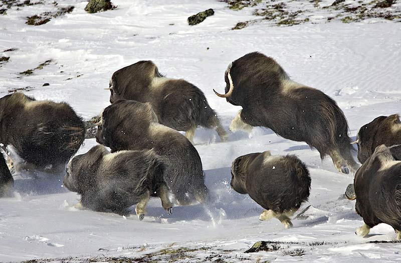 »Im Film wollte ich sowohl die schwierigen Dreh- und Fotografiebedingungen zeigen, wie auch die herrliche Schneelandschaft der norwegischen Tundra — und natürlich die urigen Moschusrinder, die schon zu Zeiten der Mammuts gelebt haben«, beschreibt Gerd Herren und ergänzt: »Natürlich überlebt haben die Moschusrinder eigentlich nur im Nordosten von Grönland und auf den arktischen Inseln von Kanada. Die Herden in den anderen aktuellen Verbreitungsgebieten — also auch in der norwegischen Tundra — wurden ab 1930 dort wieder angesiedelt.«