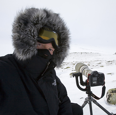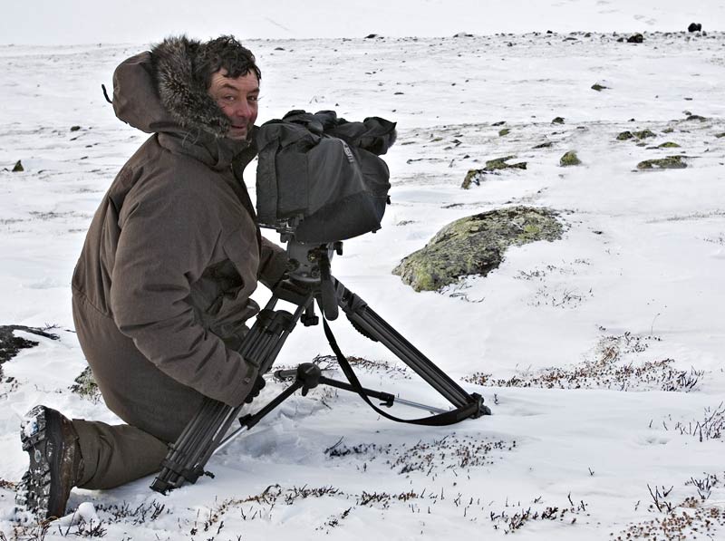 »Es ist schwierig, Moschusochsen mitten im Tundra-Winter zu filmen und deswegen sind Bilder dieser Tiere in winterlicher Umgebung sehr selten«, erläutert Gerd Herren. Der Hintergrund dieser Aussage erklärt sich aus einigen Eckdaten des Drehs: Die Moschusrinder leben in der norwegischen Tundra auf 1.500 bis 2.000 m Höhe. Gedreht wurde Anfang März, mitten im Tundra-Winter bei Außentemperaturen von -15 bis -25 Grad Celsius. In diesem Zeitraum sind in dieser Region Blizzards nicht unüblich, also Schneestürme mit Windgeschwindigkeiten bis zu 150 km/h. Das gesamte mobile Equipment mit einem Gewicht von 35 bis 40 kg musste unter diesen Bedingungen täglich von der Hütte per Schlitten zum Drehort weiter oben in den Bergen gezogen werden.