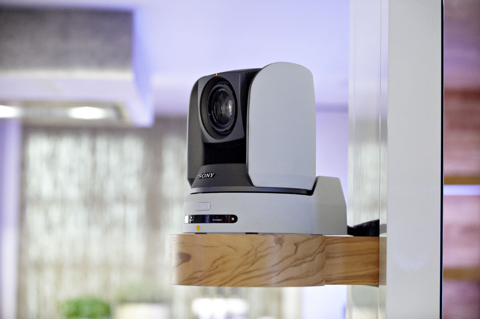 Dass Lafer von Anfang an auf HD-Technik setzte, stand außer Frage, so Walter Jünkering. »Wir erhalten von den Sony-Kameras via HD-SDI eine Qualität, die außerordentlich gut ist. In der Tat sind auf dem 70-Zoll-Display von Hantarex, das Lafer im Essbereich installieren ließ, feinste Details der Lebensmittel sichtbar. »Bei solchen Anwendungen ergibt HD wirklich Sinn, weil man bei den Lebensmitteln auf den HD-Schirmen Form und Farbe um ein Vielfaches besser beurteilen kann, als dies etwa mit SD-Technik möglich wäre. Wenn sie bei irgendeiner Kochshow im Fernsehen derzeit hören, wie man ein bestimmtes Stück Fleisch zur Faserung schneiden muss, kann es manchmal schon schwierig werden, das tatsächlich noch zu erkennen«, so Jünkering. Das ist in Johann Lafers Kochschule anders. Die räumlichen Vorgaben der Kochschule machten die Aufgabe, das »Table d’Or« medientechnisch auszustatten, für Ben Hur alles andere als einfach: Der langgezogene Raum ist gerade mal 2,5 m hoch, und aus dieser Höhe müssen einige der Kameras Johann Lafer und seine Kochschüler aufnehmen — und auch die Beleuchtung muss von der relativ niedrigen Decke aus erfolgen. Schlussendlich entschieden sich die Planer für ein modulares Konzept, bei dem es acht Auslässe in Decke und Wand gibt, in denen sich die Kameras dezent und für die Kochschüler nahezu unsichtbar unterbringen und anschließen lassen. Für die Beleuchtung sorgen Dedolights sowie Litepanels, die jedoch speziell umgebaut wurden, sodass sie ihr Licht nicht nach unten, sondern im 45-Grad-Winkel abstrahlen.