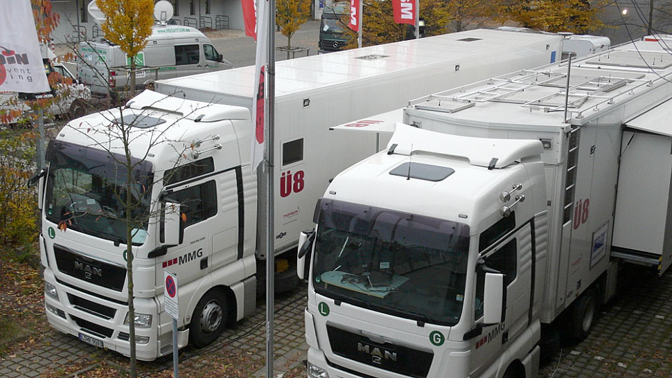 Auch für den Aufbau des Boxrings und für das Catering der rund 200 an der Produktion mitwirkenden Mitarbeiter war das Team von Bernd Michaelis zuständig. Routine für die eingespielte Mannschaft: Seit dem Jahr 2000 hat das Unternehmen zehnmal jährlich die technische Umsetzung von »Boxen im Ersten« für den Boxsportpromoter Sauerland Event durchgeführt, seit 2007 inklusive Erstellung der TV-Signale.