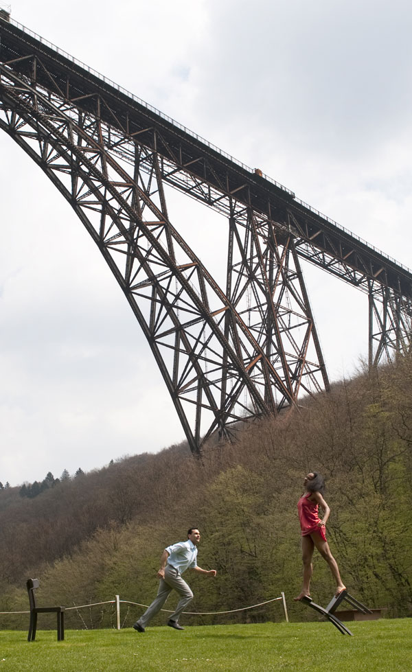 Wir haben die vier Tanzstücke live, während ausverkaufter Publikumsvorstellungen aufgezeichnet. Daher durften wir die Tänzer bei ihrer Arbeit auf der Bühne nicht beeinträchtigen oder stören. Gleichzeitig wollten wir mit der Kamera so nah an sie herankommen, wie nur möglich. Der Einsatz eines langen, teleskopischen Kranarms erlaubte uns genau diese Freiheit. Natürlich hatten die Tänzer Anfangs etwas Scheu vor diesem riesigen Auge, das mit ihnen auf der Bühne tanzte, diese Scheu hat sich aber bald gelegt. So sind unglaublich nahe und dynamische Aufnahmen entstanden, die dem Zuschauer das Gefühl geben, mit den Tänzern auf der Bühne zu stehen. Stereo-3D liebt die Tiefe – so kann man zusammenfassen, warum die Soli der Tänzer außerhalb des Theaterraumes eine perfekte Ergänzung zu den Tanzstücken auf der Bühne sind. Diese spektakuläre Tanzszenen entstanden an prägnanten Orten in Wuppertal und Umgebung, in Straßenzügen, Wäldern, Berghalden, Industrielandschaften, und natürlich in der Wuppertaler Schwebebahn.
