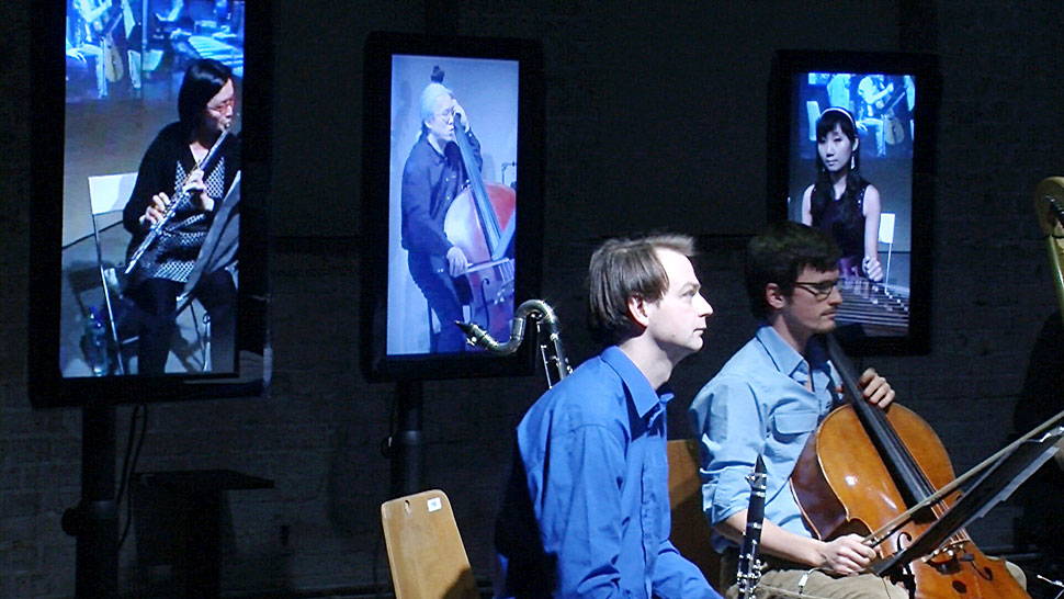 Bei »Synchronizing Berlin — Hong Kong« spielten in den beiden Metropolen gleichzeitig jeweils vier Musiker zwei Stücke moderner E-Musik, die speziell für diesen Zweck komponiert worden waren, Das parallele Spiel der beiden räumlich getrennten Ensembles ergänzte sich dabei zu einem gemeinsamen Konzert. Über eine dedizierte Standleitung wurde dazu per IP-TV an beiden Orten der Part des jeweils anderen Ensembles in Ton und Bild zugeschaltet.