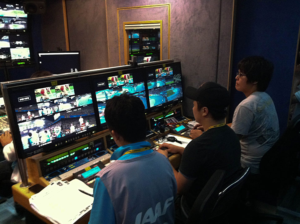 Bei der 13. IAAF Leichtathletik-Weltmeisterschaft in Daegu ist der von Broadcast Solutions gebaute, neue 16-Kamera-HD-Ü-Wagen »HDTV-4« von KBS täglich bis zu acht Stunden für die Produktion des Integrated-Host-Feeds im Einsatz. KBS ist die größte öffentlich-rechtliche Rundfunkanstalt in Südkorea und am Host-Broadcasting der Leichtathletik-WM beteiligt.