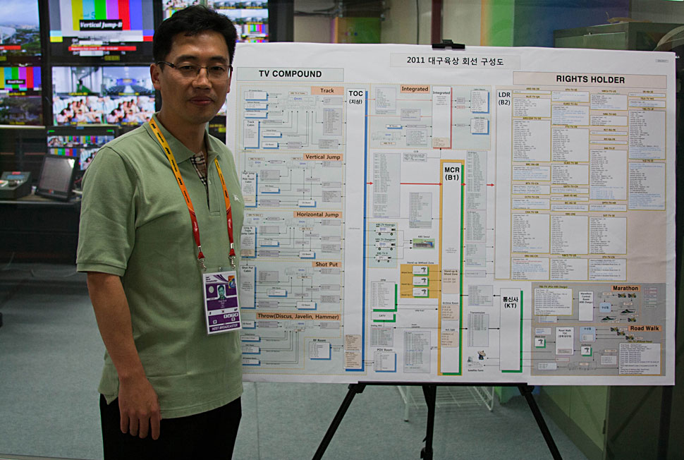 »Bei der Leichtathletik-WM kämpfen Männer und Frauen in insgesamt 47 Disziplinen. Der neue Ü-Wagen ist für die Host-Übertragung aller Laufdisziplinen zuständig, was etwa 60% der Wettbewerbe ausmacht. Der neue HD-Ü-Wagen TV-4 ist daher sehr wichtig für KBS, denn die Produktion der Leichtathletik-WM ist sehr komplex«, erklärt Young Suck Cho, Technical Producer der WM in Daegu.